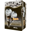 Chunks of chocolate cookies and vanilla ice cream in a crispy chocolate lined waffle cone.